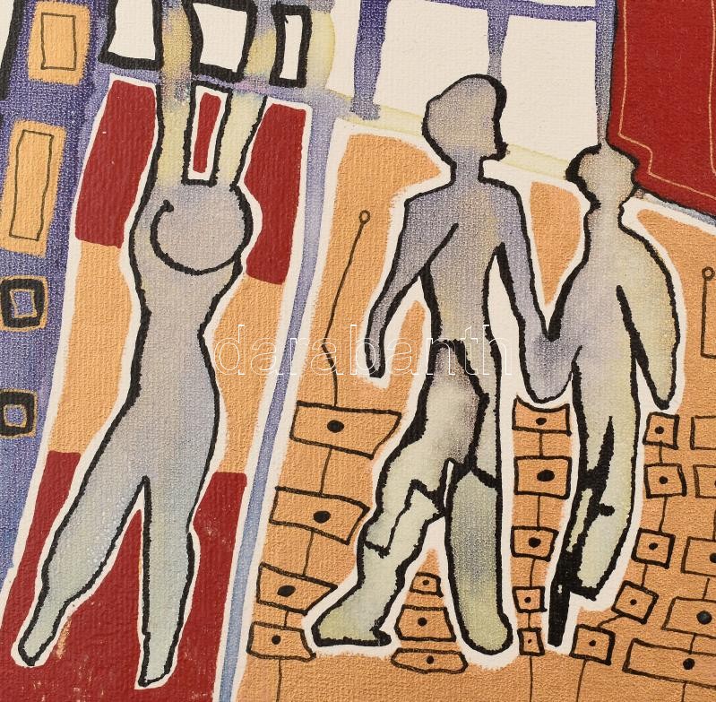 Krnács Ágota (1976-): Honvágy, 2006. Ecolin, színes tus, karton, jelezve jobbra lent, hátoldalán címkén feliratozott. 50×60 cm / Ágota Krnács (1976-): Homesick, 2006. Ecolin and ink on board, signed lower right, with description on the