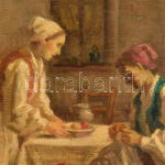 Krusnyák Károly (1889-1960): Jelenet. Olaj, vászon. Jelezve jobbra lent. Dekoratív fakeretben. 80×60 cm<a href="https://www.darabanth.com/hu/gyorsarveres/438/kategoriak~Festmenyek-es-grafikak/Festmenyek-es-grafikak~500001/Krusnyak-Karoly-1889-1960-J