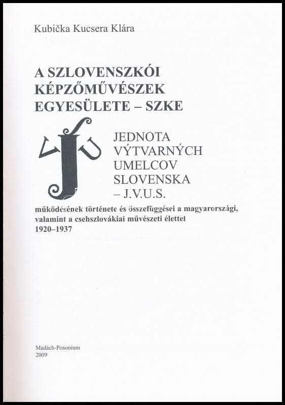 Kubicka Kucsera Klára: A Szlovenszkói Képzőművészek Egyesülete – SZKE működésének története és összefüggései a magyarországi, valamint a csehszlovákiai művészeti élettel. 1920-1937. Jednota Vytvarnych Umelcov Slovenska – J. U.