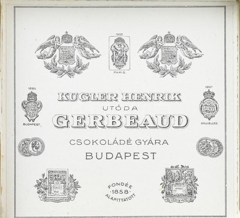 Kugler Henrik utóda Gerbeaud Csokoládégyára Budapest papírdoboz, szép állapotban, 9,5×10×2 cm