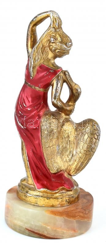 Léda a hattyúval, zománcozott fém, műmárvány talapzaton, jelzés nélkül, kopásnyomokkal, kis sérüléssel, m: 24 cm<a href="https://www.darabanth.com/hu/gyorsarveres/417/kategoriak~Mutargy-papirregiseg-egyeb/Szobrok-kisplasztikak-plakettek~9/Leda-a-hat