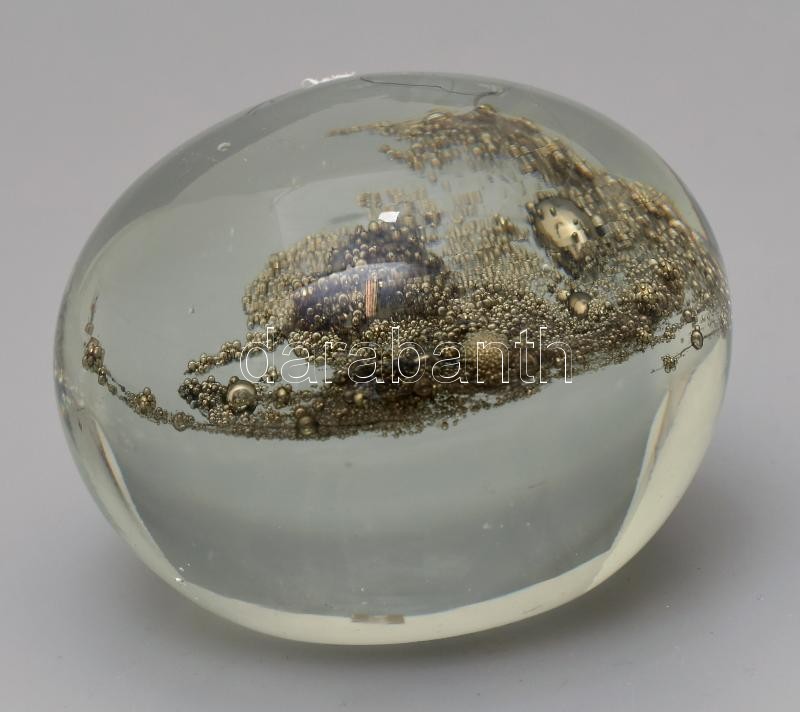 Levélnehezék, üveg, nonfiguratív díszítménnyel, jelzés nélkül, m:6cm, d:8,5cm