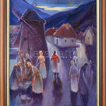 Lindenfeld Emil (1905-1986): ‘Contro Luce’ (ellenfény). Olaj, vászon. Jelzett. Hátoldalán autográf felirattal. Dekoratív fakeretben. 46×35,5 cm