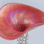 Loetz Austria jelzéssel: Díszváza. Fújt üveg, überfangglas, fésűs technikával díszített, irizáló réteggel. Kopásnyomokkal. m: 23 cm<a href="https://www.darabanth.com/hu/gyorsarveres/414/kategoriak~Porcelan-keramia-uveg/Uvegtargyak~500007/Loetz-Austr