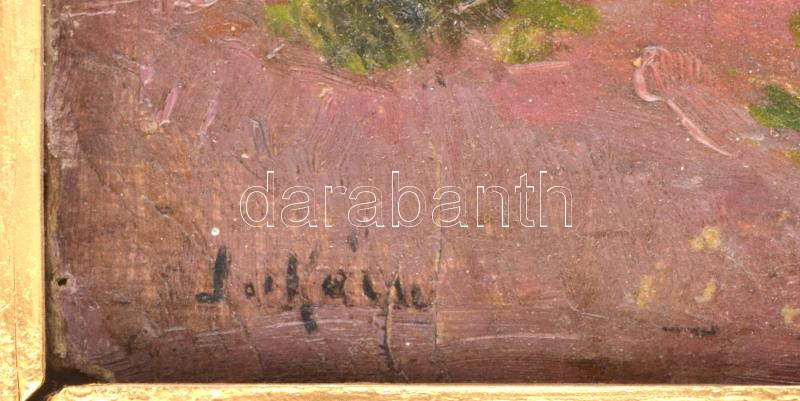 Lukácsy János (1884-1944): Ceglédi virágos udvar, háttérben a református templommal. Olaj, karton, jelezve balra lent. Kissé vetemedett. Dekoratív fakeretben. 49×65 cm<a href="https://www.darabanth.com/hu/nagyaukcio/39/kategoriak~Festmenyek-es-grafi