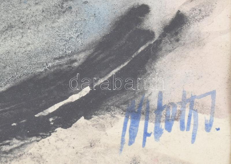 M. Tóth István (1922-2006): Bujkáló hold. Akvarell, papír, jelzett, hátoldalán autográf felirattal, üvegezett fakeretben, 39×36 cm