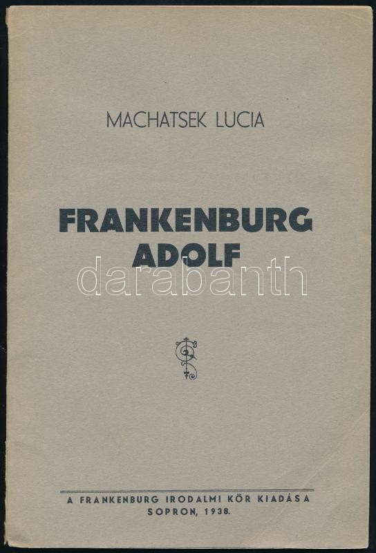 Machatsek Lucia: Frankenburg Adolf. Sopron, 1938, Frankenburg Irodalmi Kör. Kiadói papírkötés, jó állapotban.<a href="https://www.darabanth.com/hu/gyorsarveres/411/kategoriak~Konyvek/Konyvek-Egyeb-ritkasagok~1500021/Machatsek-Lucia-Frankenburg-Adolf