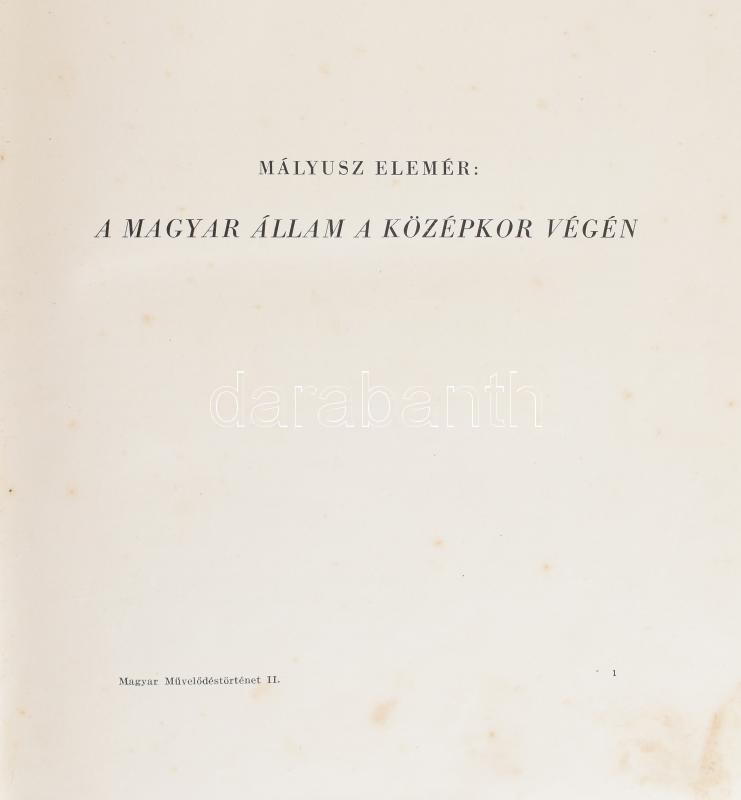 Magyar művelődéstörténet I-V. kötet. Szerk.: Domanovszky Sándor. Bp., é.n.(1939-1942.), Magyar Történelemi Társulat. Gazdagon illusztrálva. Kiadói, aranyozott, gerincű félbőr-kötésben, kopott, foltos borítókkal, foltos lapokkal, az I-III. kötetben hiányzó