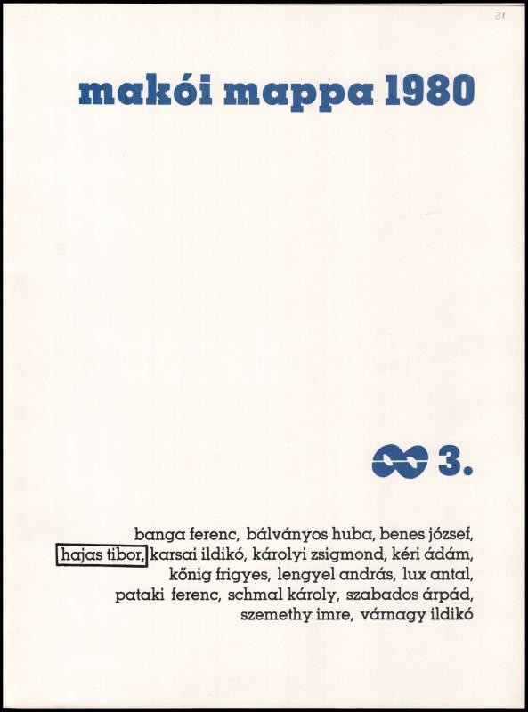 Makói mappa, 1980, 3.. Hajas Tibor, Banga Ferenc, Bálványos Huba, Benes József, Karsai Ildikó, Károlyi Zsigmond, Kéri Ádám, Kőnig Frigyes, Lengyel András, Lux Antal, Pataki Ferenc, Schmal Károly, Szabados Árpád, Szemethy Imre és Várnagy Ildikó grafikáival