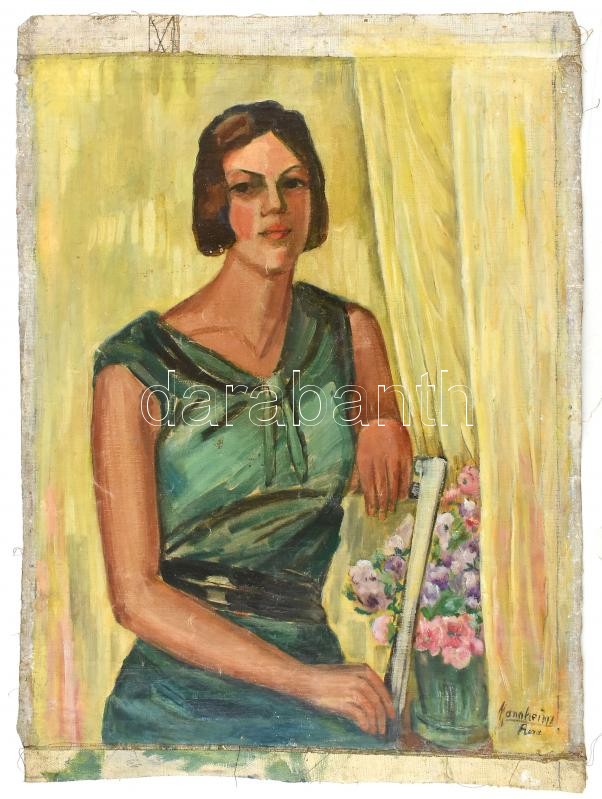 Mannheim Róza (1880-1965): Art-deco hölgy portréja. Olaj, vászon, jelzett, vakkeret nélkül, kissé sérült, 63×47,5 cm<a href="https://www.darabanth.com/hu/gyorsarveres/414/kategoriak~Festmenyek-es-grafikak/Festmenyek-es-grafikak~500001/Mannheim-Roza-