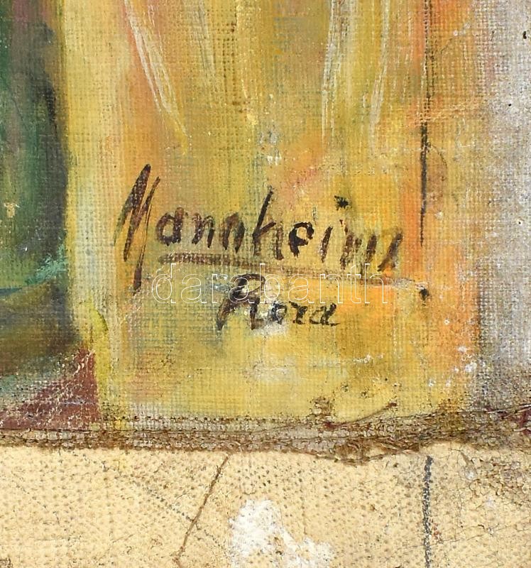 Mannheim Róza (1880-1965): Art-deco hölgy portréja. Olaj, vászon, jelzett, vakkeret nélkül, kissé sérült, 63×47,5 cm