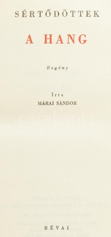 Márai Sándor: Sértődöttek. I. rész.: A hang. Bp., 1947, Révai, 296+2 p. Első kiadás! Kiadói félvászon kötés.<a href="https://www.darabanth.com/hu/gyorsarveres/415/kategoriak~Konyvek/Konyvek-Egyeb-ritkasagok~1500025/Marai-Sandor-Sertodottek-I-resz-A-