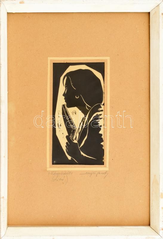 Margittai Jenő (1929 – ) : Könyvbarát. Linó, papír, jelzett üvegezett keretben, 22×11 cm<a href="https://www.darabanth.com/hu/gyorsarveres/414/kategoriak~Festmenyek-es-grafikak/Festmenyek-es-grafikak~500001/Margittai-Jeno-1929–Konyvbarat-Lino-papir