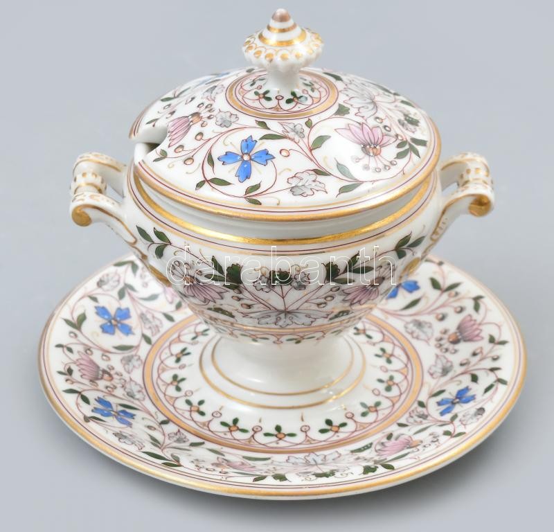 Mártásos edény. Porcelán, jelzés nélkül, kézzel festett, kis kopással. d: 14 cm, m: 11 cm<a href="https://www.darabanth.com/hu/gyorsarveres/421/kategoriak~Porcelan-keramia-uveg/Porcelan~500006/Martasos-edeny-Porcelan-jelzes-nelkul-kezzel-festett-kis