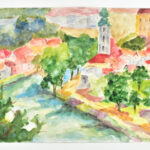Mártonfi Benke Márta (1958-): Színes város. Akvarell, papír, jelzett. Paszpartuban. 29,5×39 cm<a href="https://www.darabanth.com/hu/gyorsarveres/440/kategoriak~Festmenyek-es-grafikak/Festmenyek-es-grafikak~500001/Martonfi-Benke-Marta-1958-Szines-var