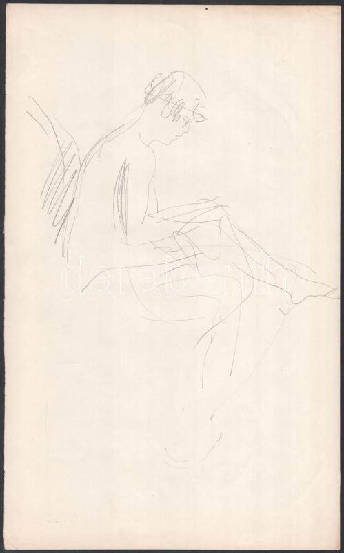 Mattyasovszky-Zsolnay László (1885-1935), kétoldalas mű: Ülő női akt. Ceruza, papír. Egyik oldalon hagyatéki pecséttel jelzett. 34×21 cm<a href="https://www.darabanth.com/hu/gyorsarveres/423/kategoriak~Festmenyek-es-grafikak/Festmenyek-es-grafikak~2
