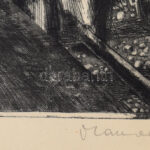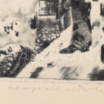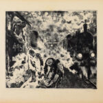 Maurer Dóra (1937- ): Vasutasok csempészik a „Proletár”-t. Rézkarc, papír, jelzett, kartonra kasírozva. 26×30 cm