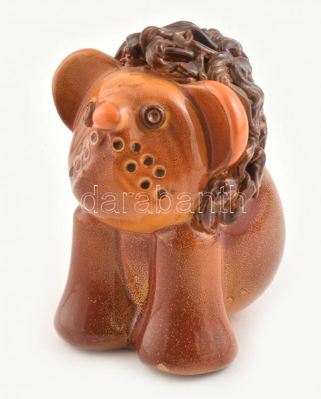 Mázas kerámia oroszlán, jelzés nélkül, kis mázhibával, m: 16 cm