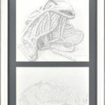 Melocco Miklós (1935): Kötél csomó – Memento Mori. Ceruza, papír, üvegezett keretben. 21 x 30 cm, 14 x 30 cmj.j.l.: Melocco 2004