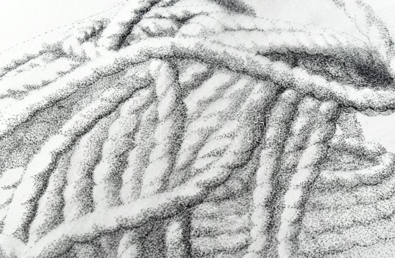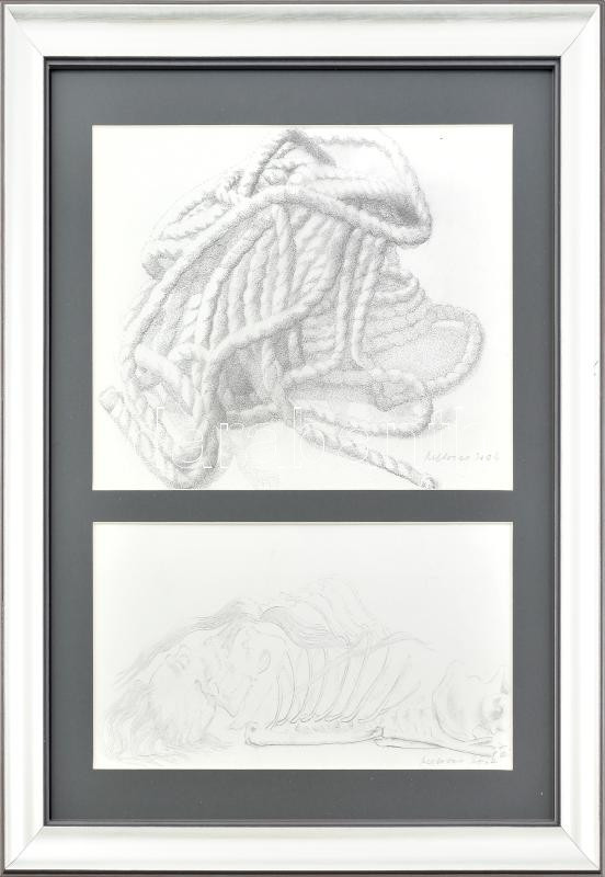 Melocco Miklós (1935): Kötél csomó – Memento Mori. Ceruza, papír, üvegezett keretben. 21 x 30 cm, 14 x 30 cmj.j.l.: Melocco 2004<a href="https://www.darabanth.com/hu/gyorsarveres/436/kategoriak~Festmenyek-es-grafikak/Festmenyek-es-grafikak~500001/Me