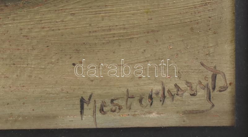 Mesterházy Dénes (1900-1949 körül): Csendélet. Olaj, fa, jelzett. Dekroatív, kissé sérült fa keretben, 24×33,5 cm