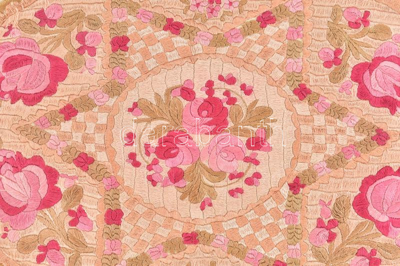 Mezőkövesdi terítő, gazdagon hímzett virágmintás díszítés, apró hibákkal, 20. sz. első fele, h: 56, sz: 32 cm
