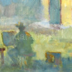 Miháltz Pál (1899-1988): Tavasszal (festő a szabadban), 1957. Olaj, vászon. Jelezve jobbra lent. Hátoldalán autográf felirattal és Képzőművészeti Alap bíráló bizottságának címkéjével. 70×60 cm / Oil on canvas. Signed lower