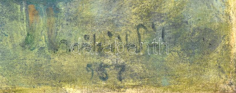 Miháltz Pál (1899-1988): Tavasszal (festő a szabadban), 1957. Olaj, vászon. Jelezve jobbra lent. Hátoldalán autográf felirattal és Képzőművészeti Alap bíráló bizottságának címkéjével. 70×60 cm / Oil on canvas. Signed lower right. With autograph descriptio