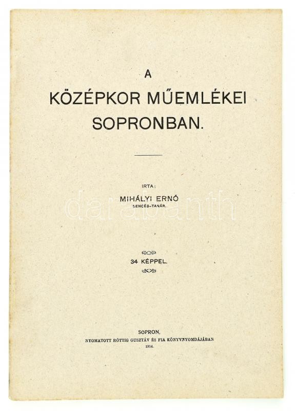 MIhályi Ernő: A középkor műemlékei Sopronban 34 képpel. Sopron, 1914. Röttig Gusztáv. 60p.