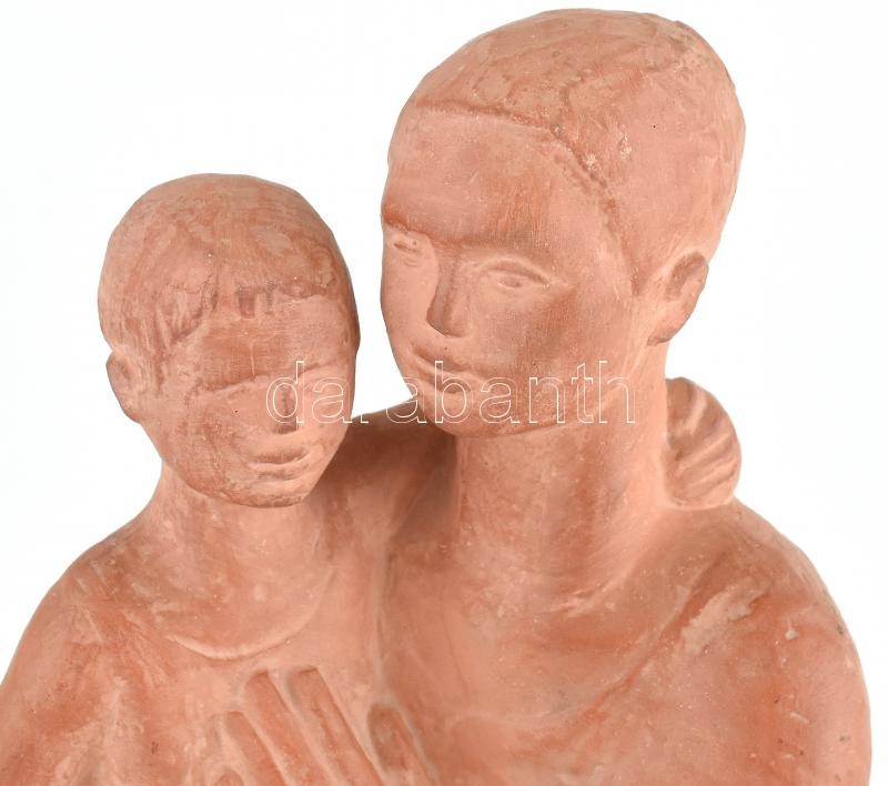 Miró Eszter (1935-): Anya gyermekével. Terrakotta szobor. hibátlan. Jelzett. m:28 cm<a href="https://www.darabanth.com/hu/gyorsarveres/412/kategoriak~Porcelan-keramia-uveg/Keramiak~500005/Miro-Eszter-1935-Anya-gyermekevel-Terrakotta-szobor-hibatlan-