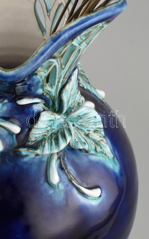 Morvay Zsuzsa (1946-): Váza virágokkal. Mázas kerámia, jelzett, hibátlan m: 56 cm<a href="https://www.darabanth.com/hu/gyorsarveres/416/kategoriak~Porcelan-keramia-uveg/Keramiak~500005/Morvay-Zsuzsa-1946-Vaza-viragokkal-Mazas-keramia-jelzett-hibatla