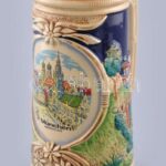 Müncheni városképes, nagyméretű német sörös korsó. Mázas kerámia, kézzel festett, jelzés nélkül, m: 21,5 cm<a href="https://www.darabanth.com/hu/gyorsarveres/424/kategoriak~Porcelan-keramia-uveg/Keramiak~500005/Muncheni-varoskepes-nagymeretu-nemet-s