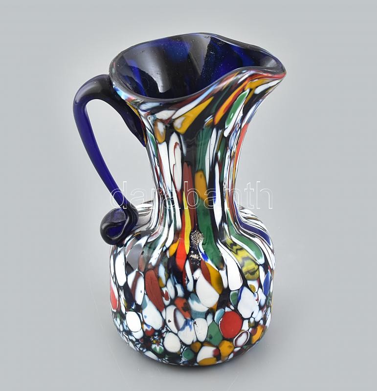 Muránói üveg kiöntő, apró kopásokkal, jelzés nélkül, m: 13 cm