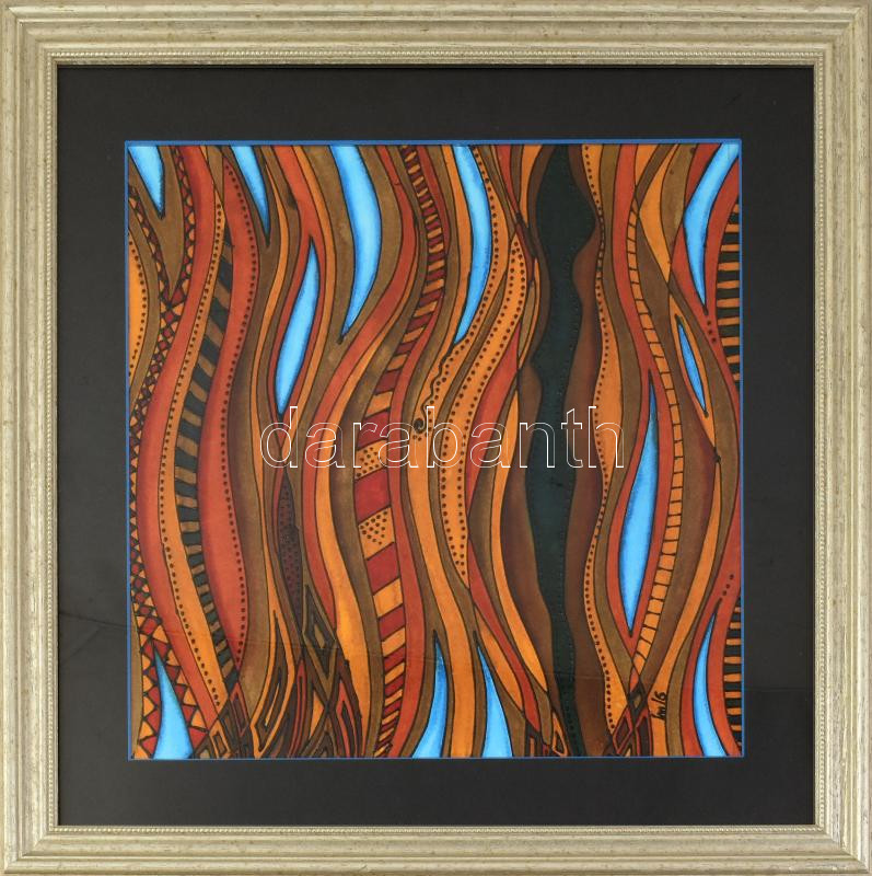 Nagy Imola (1976-): Elrejtőzve. Akvarell, kontúrfesték, papír, jelezve jobbra lent, hátoldalán autográf felirattal, fakeretben, 30×30 cm<a href="https://www.darabanth.com/hu/gyorsarveres/438/kategoriak~Festmenyek-es-grafikak/Festmenyek-es-grafikak~5