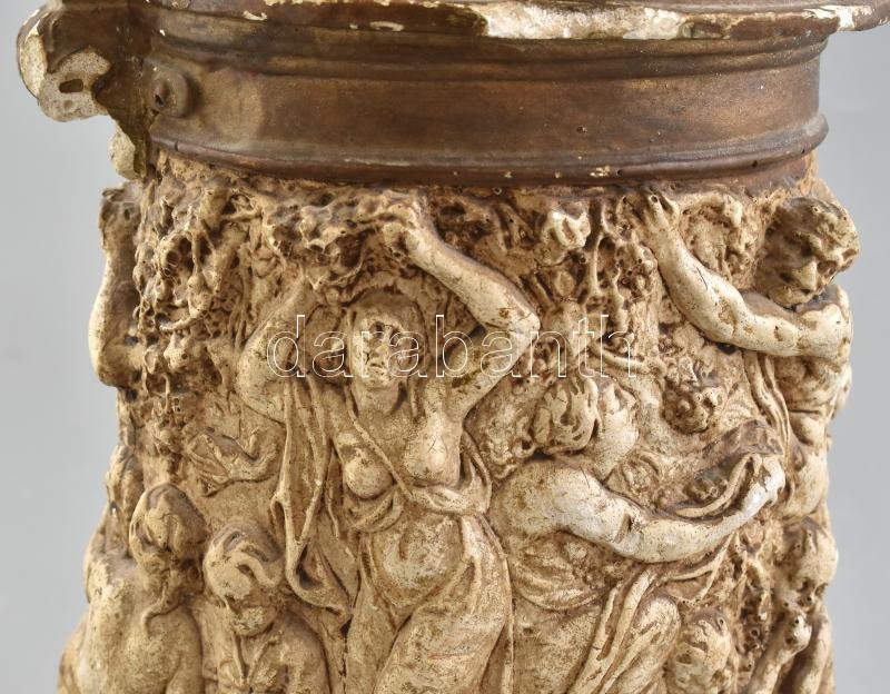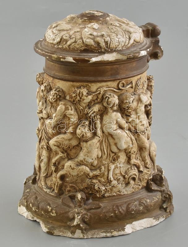 Nagy méretű gipsz korsó, mitológiai jelenettel. Sérült több helyen 26 cm