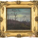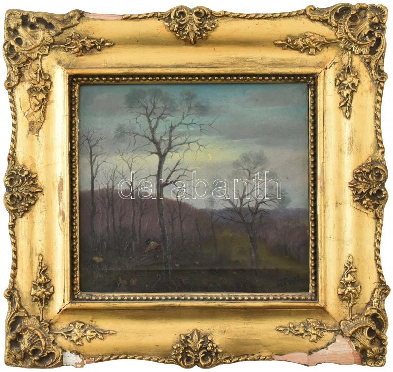Nagy Pál (?-?, nagybányai festőnövendék 1917-ben): Erdélyi táj rőzsehordóval, 1923. Olaj, vászon. Jelezve jobbra lent. Dekoratív, sérült fa keretben. 24×26,5 cm.<a href="https://www.darabanth.com/hu/gyorsarveres/411/kategoriak~Festmenyek-es-grafikak