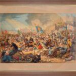 Nándorfehérvár felmentése Hunyadi János által 1456. jul. 21. Kromolitográfia, papír, jelzés nélkül. Bogner, Anton (1812-1859) után, 1900 körül. Üvegezett fakeretben, 52,5×79 cm<a href="https://www.darabanth.com/hu/gyorsarveres/424/kategoriak~Festmen