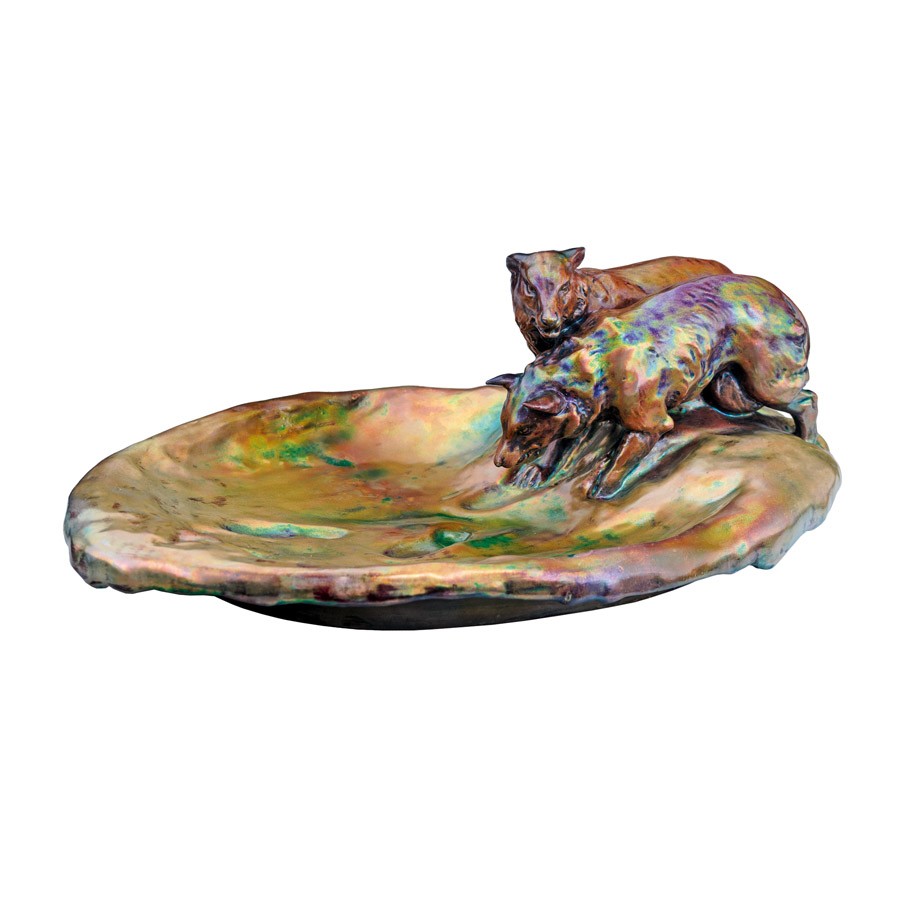 Zsolnay gyár, Pécs, 1910 körül, eozinmázas fehércserép, talpán domború körpecséttel jelzett, 8955 formaszámmal, peremen kis felületi restaurálással, 44*25, 5*15 cm