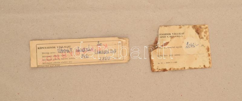 Novák András (1936-2017): Csendélet. Olaj, farost, jelezve balra fent. Hátoldalán Képcsarnok Vállalat címkéivel, üvegezett fakeretben, 60×80 cm<a href="https://www.darabanth.com/hu/gyorsarveres/427/kategoriak~Festmenyek-es-grafikak/Festmenyek-es-gra