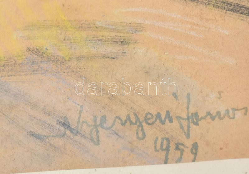 Nyergesi János (1895-1982): Színekben pompázó utca. Akvarell, papír, jelzett. Üvegezett fakeretben. 22,5×31 cm<a href="https://www.darabanth.com/hu/gyorsarveres/436/kategoriak~Festmenyek-es-grafikak/Festmenyek-es-grafikak~500001/Nyergesi-Janos-1895-