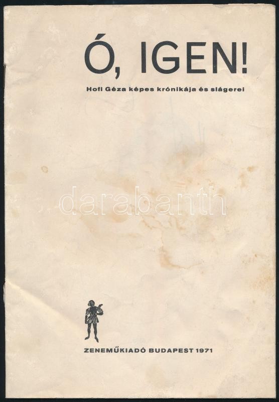 Ó igen! Hofi Géza képes krónikája és slágerei. Bp., 1971. Zeneműkiadó. Kiadói papírkötésben<a href="https://www.darabanth.com/hu/gyorsarveres/412/kategoriak~Mutargy-papirregiseg-egyeb/Nyomtatvanyok~2000093/O-igen-Hofi-Geza-kepes-kronikaja-es-slagere