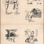 Ócsvár Rezső (1877-1968): Illusztrációk 5 db lapon. Tus, papír, egyik lap jelzett és datált, többi jelzés nélkül, 30×23,5 cm. / illustrations on 5 sheets, ink on paper, one of them signed, others unsigned.