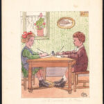 Ócsvár Rezső (1877-1968): Kisfiú és kislány írás közben (illusztráció), 1925. Akvarell, tus, papír, jelzett, 20×16 cm. / watercolour on paper, signed<a href="https://www.darabanth.com/hu/gyorsarveres/436/kategoriak~Festmenyek-es-grafikak/Festmenyek-