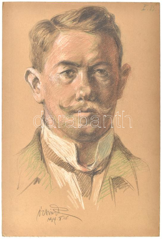 Ócsvár Rezső (1877-1968): Portré (önarckép?). Ceruza, papír, jelzett, kartonra kasírozva, 44×30 cm.<a href="https://www.darabanth.com/hu/gyorsarveres/431/kategoriak~Festmenyek-es-grafikak/Festmenyek-es-grafikak~5000002/Ocsvar-Rezso-1877-1968-Portre-