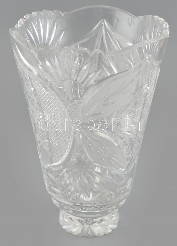 Ólomkristály váza, metszett, apró kopásnyomokkal, m: 23 cm