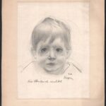 Olvashatatlan jelzéssel: Kislány portréja, 1930. Ceruza, papír, lap teteje kartonra kasírozva, 22×16,5 cm
