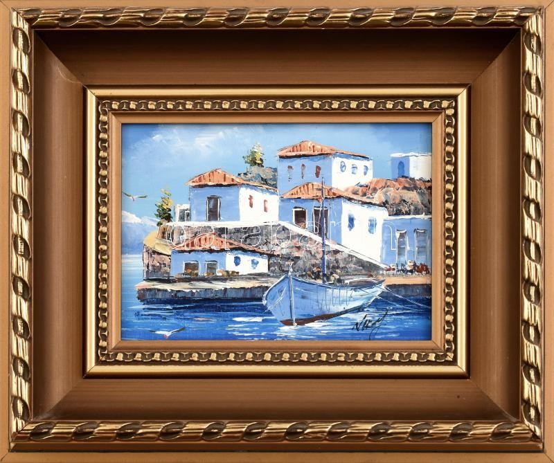 Olvashatatlan jelzéssel: Mediterrán tengerpart. Olaj, karton. Dekoratív fa keretben, 13×17,5 cm<a href="https://www.darabanth.com/hu/gyorsarveres/413/kategoriak~Festmenyek-es-grafikak/Festmenyek-es-grafikak-jelzessel-jelzes-nelkul~500002/Olvashatatl