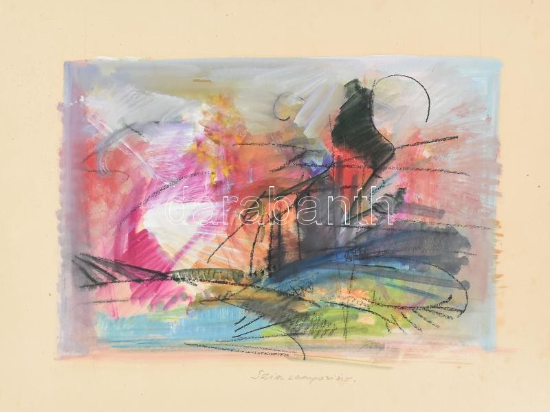 Olvashatatlan jelzéssel: Színkompozíció. Vegyest technika, papír, 20,5×30 cm<a href="https://www.darabanth.com/hu/gyorsarveres/416/kategoriak~Festmenyek-es-grafikak/Festmenyek-es-grafikak-jelzessel-jelzes-nelkul~500002/Olvashatatlan-jelzessel-Szinko