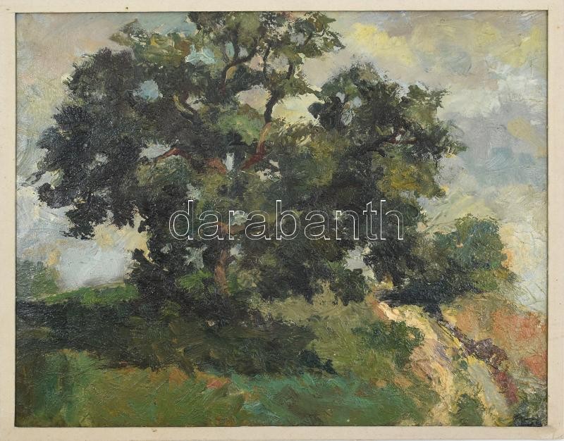 Olvashatatlan jelzéssel: Zöldellő táj. Olaj, karton. 33,5×43 cm<a href="https://www.darabanth.com/hu/gyorsarveres/421/kategoriak~Festmenyek-es-grafikak/Festmenyek-es-grafikak-jelzessel-jelzes-nelkul~500002/Olvashatatlan-jelzessel-Zoldello-taj-Olaj-k