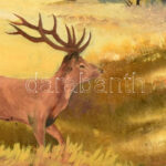 Ördög János (?-): Szarvas az erdőben. Olaj, vászon. Jelezve jobbra lent. Dekoratív, faragott fakeretben. 50×70 cm<a href="https://www.darabanth.com/hu/gyorsarveres/437/kategoriak~Festmenyek-es-grafikak/Festmenyek-es-grafikak~500001/Ordog-Janos-Szarv